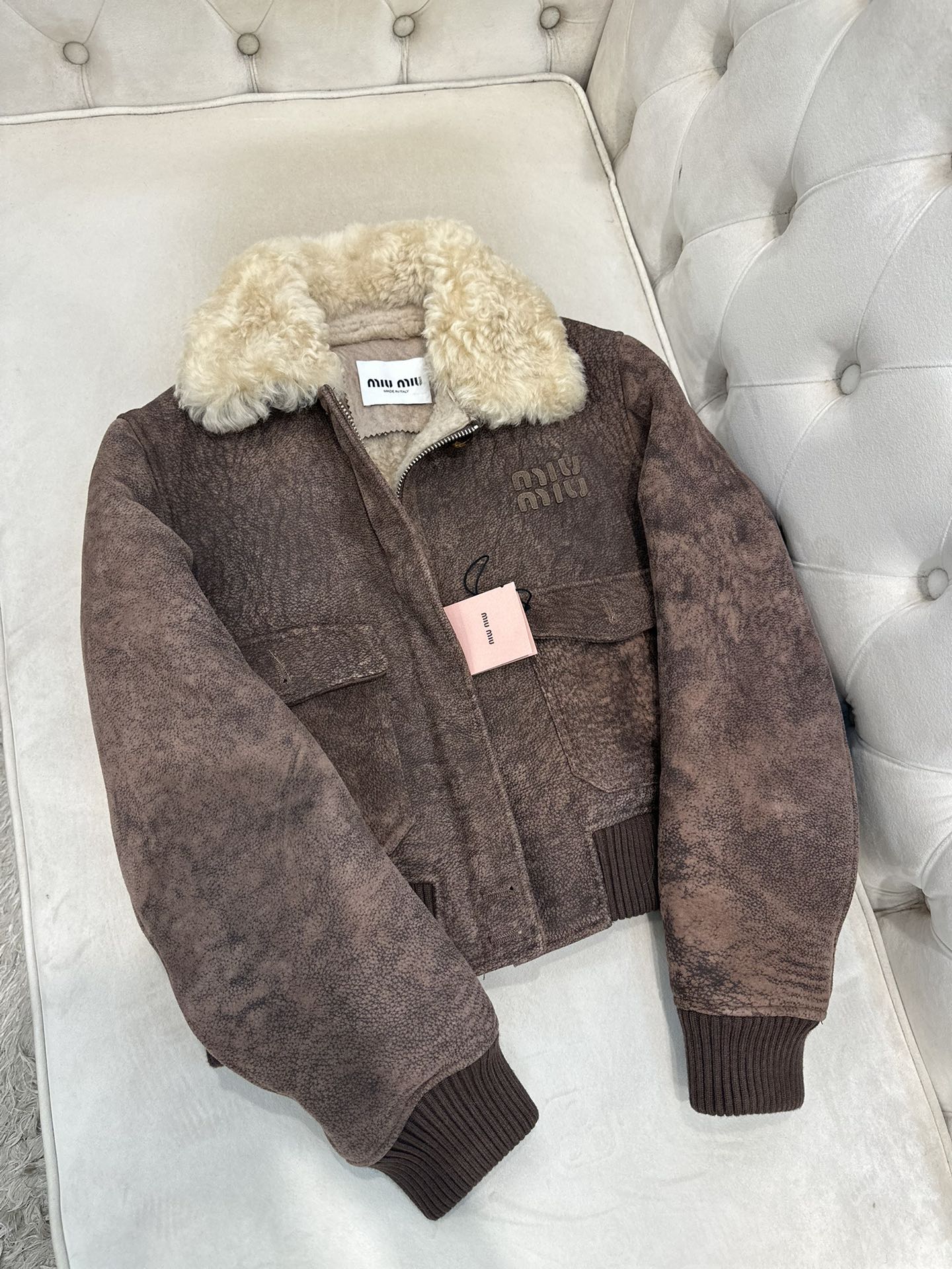 미우미우 스웨이드 프로스티드 패턴 재킷