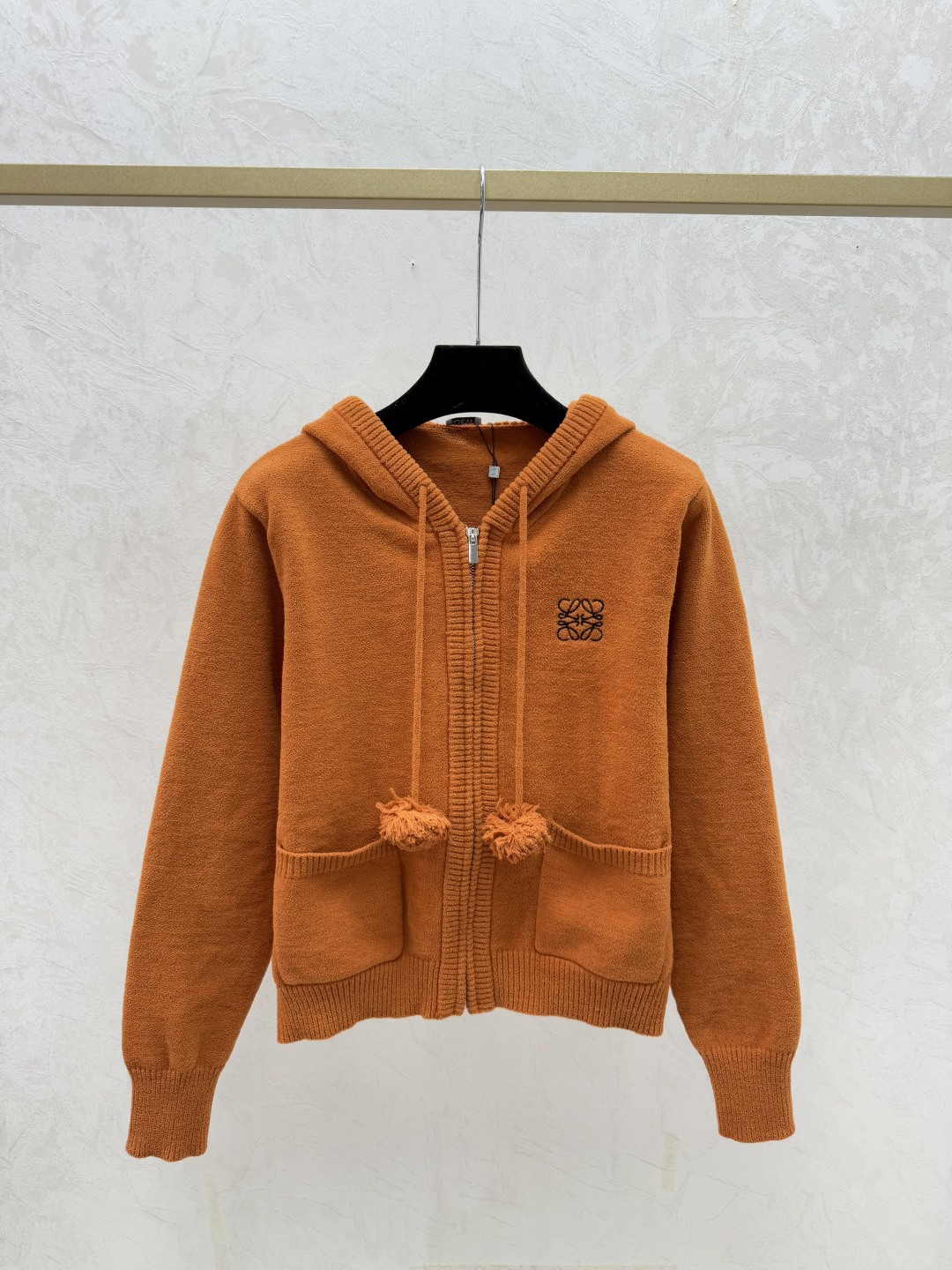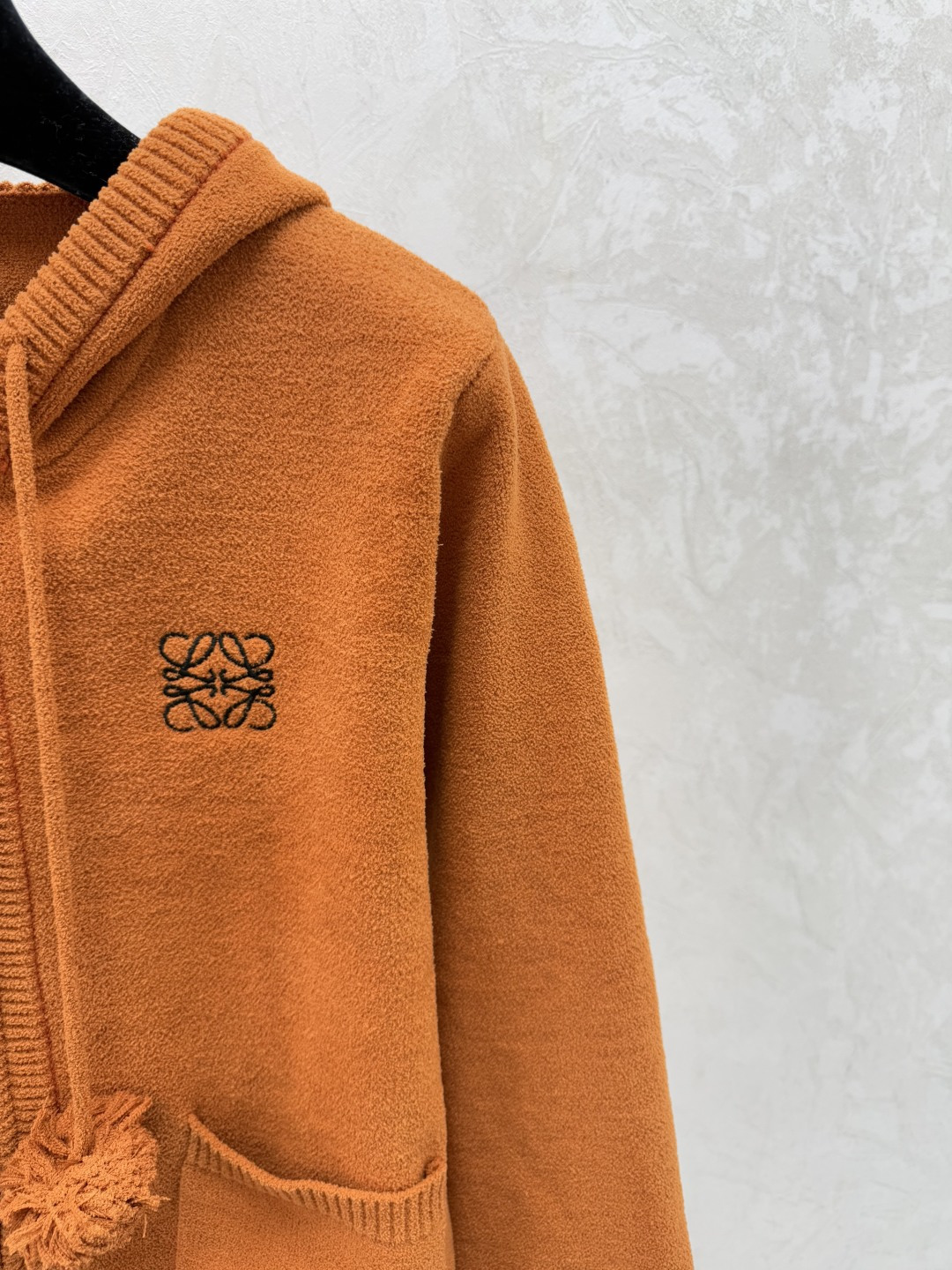 로에베 솔리드 컬러 후드 드로스트링 니트 가디건