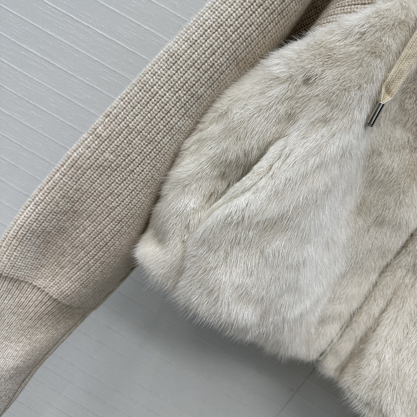 BC 실버 오키드 밍크 퍼 구스다눙 후드 재킷