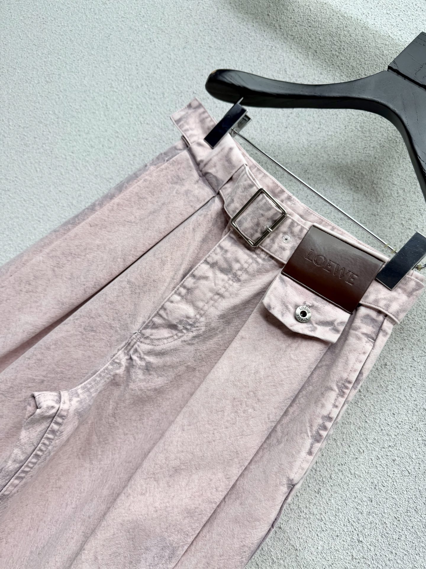 로에베 핑크 레더 라벨 데님