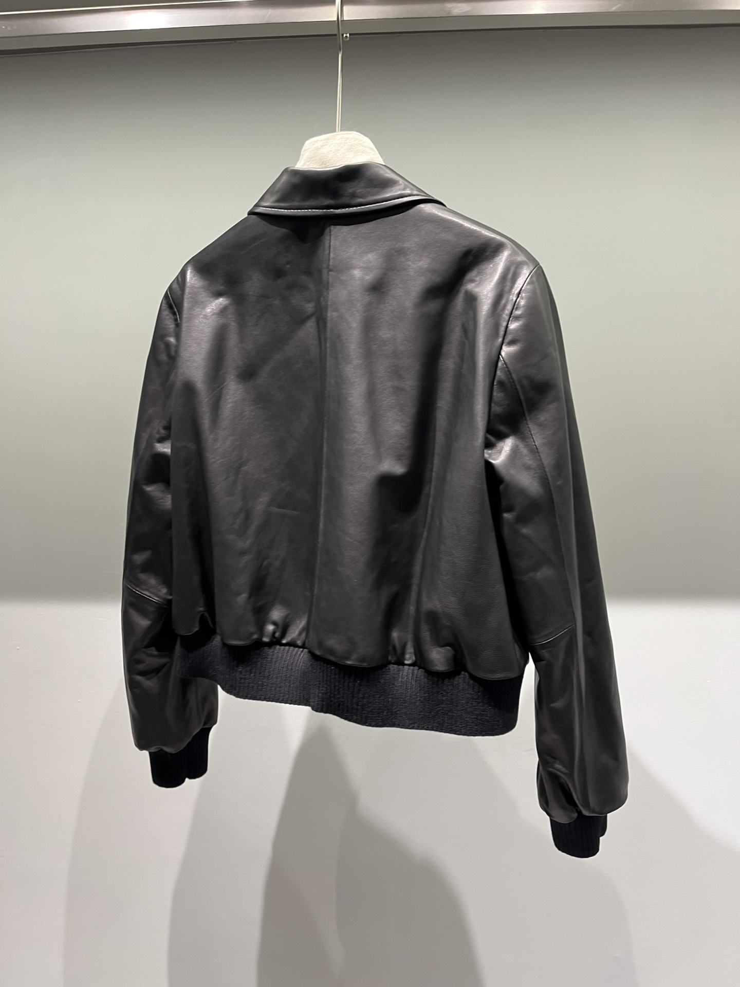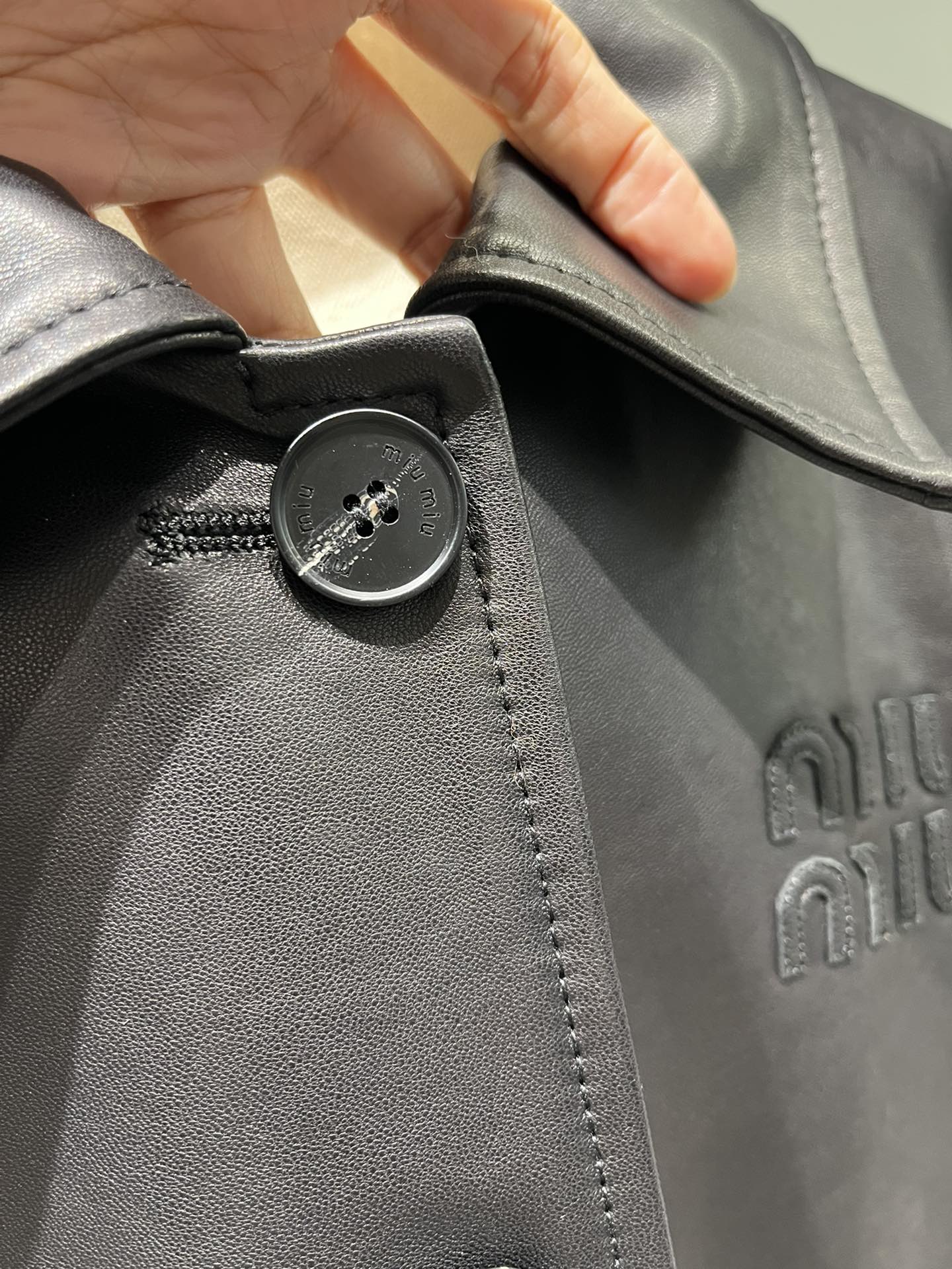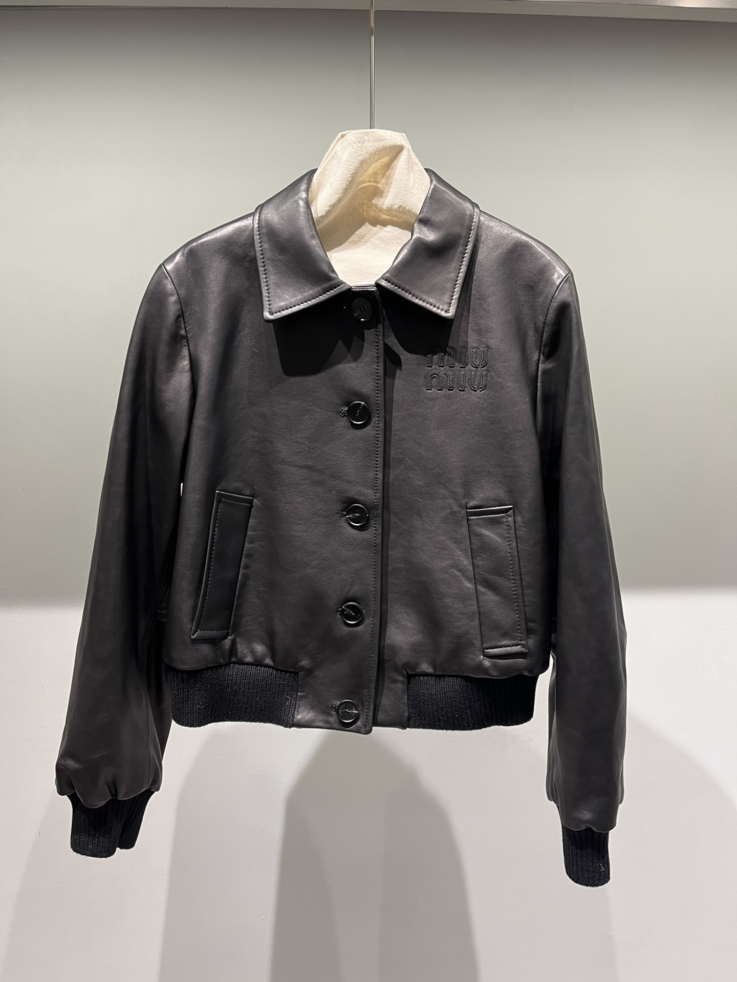 미우미우 솔리드 컬러 라펠 지퍼 재킷
