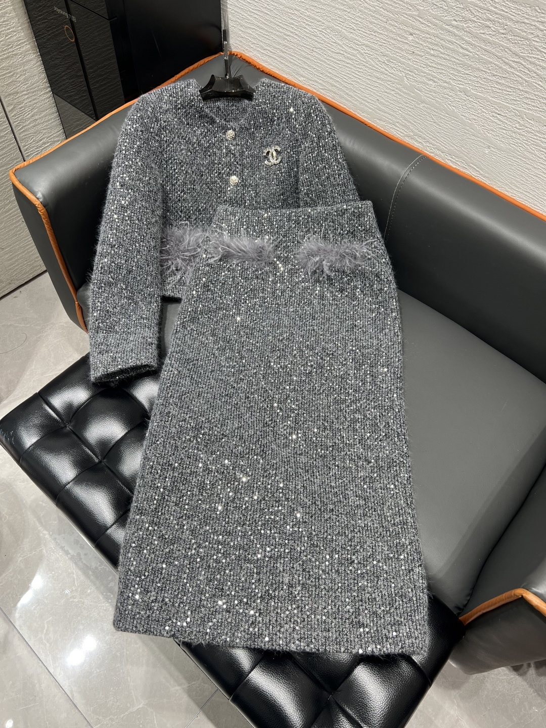 샤넬 스뱅글 퍼 재킷 하이웨스트 스커트
