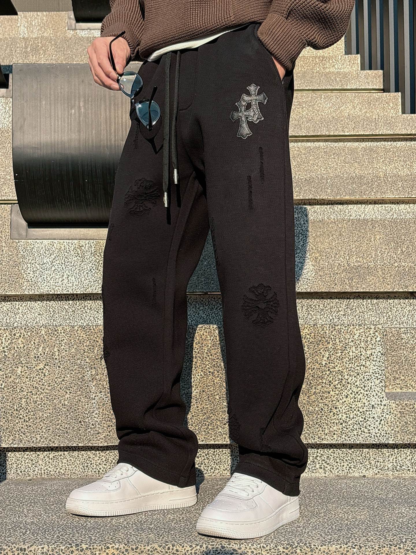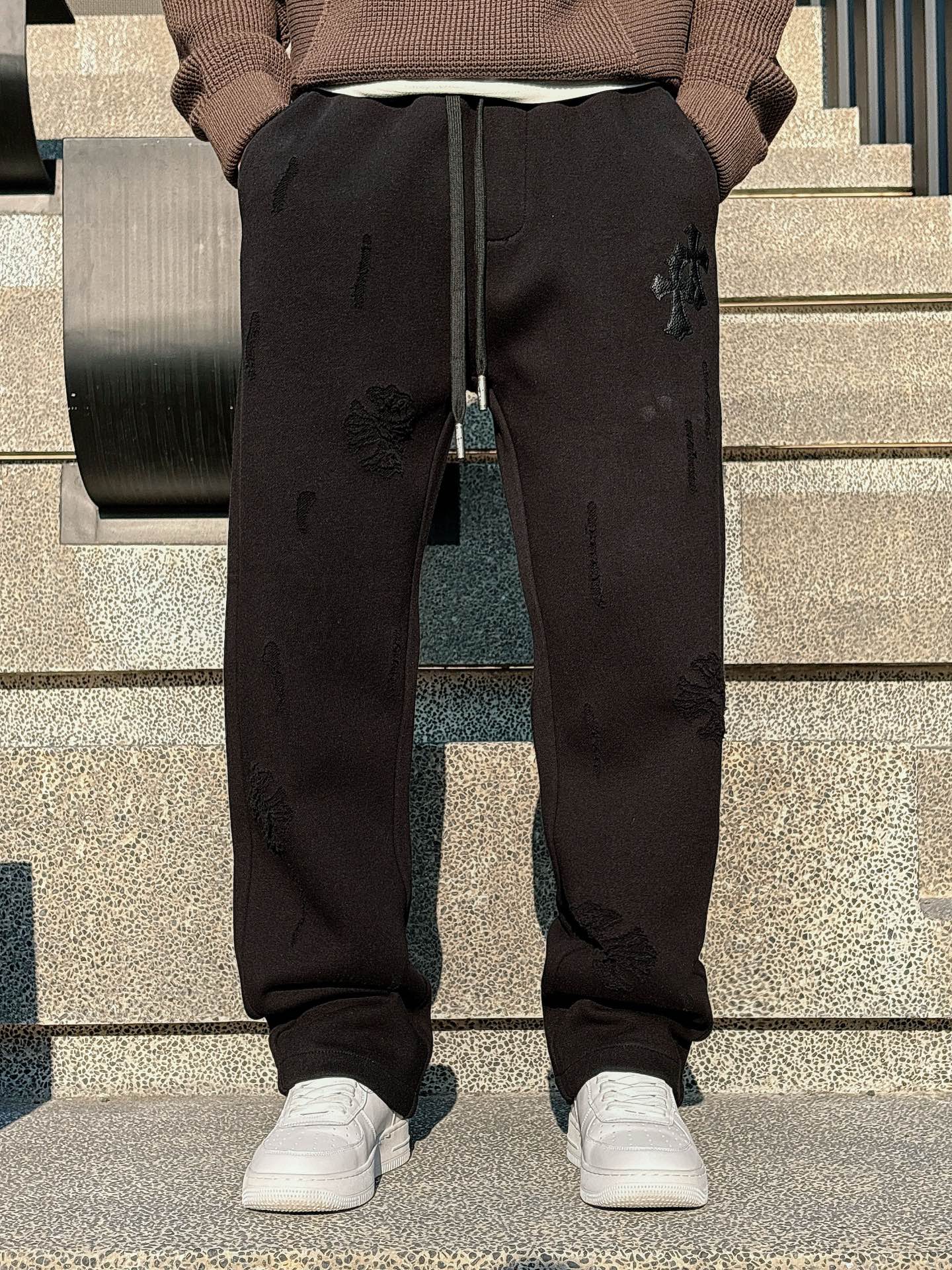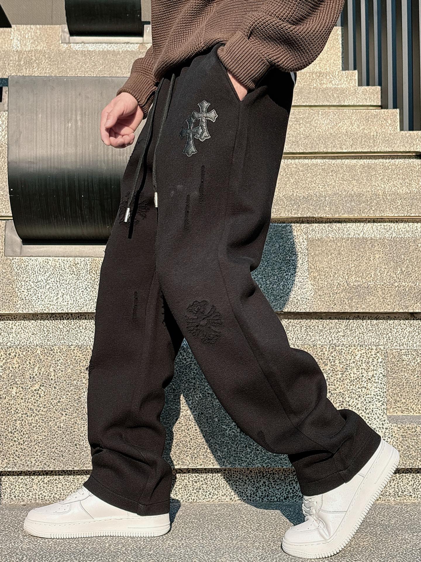 크롬 하즈 자수 무늬 팬츠