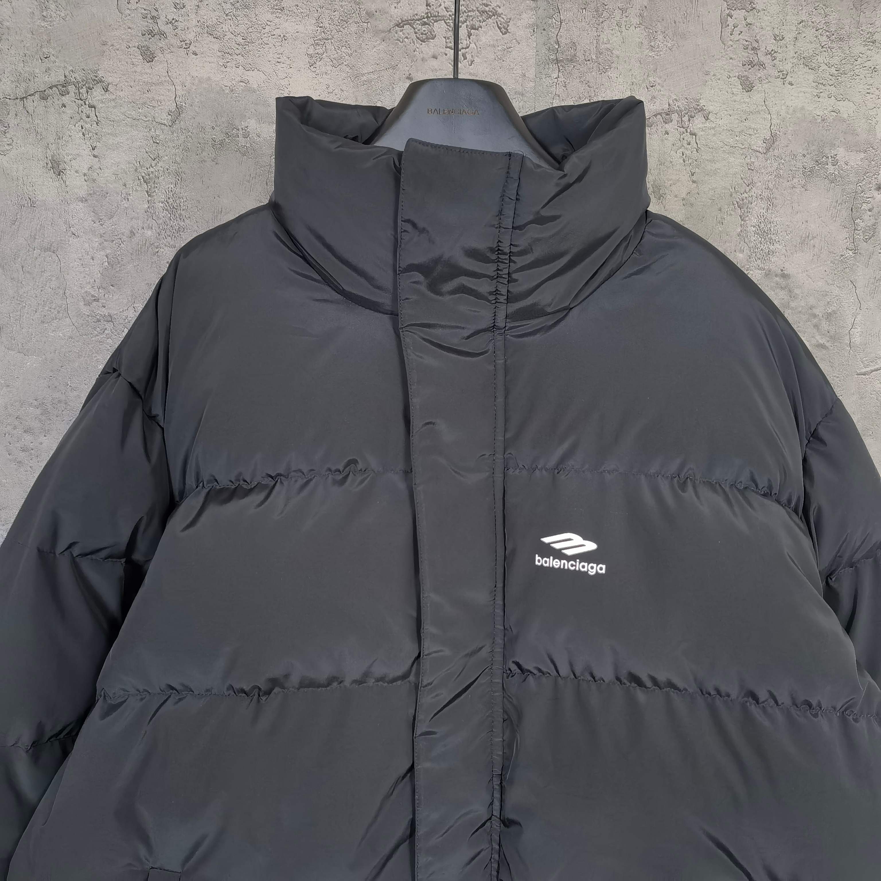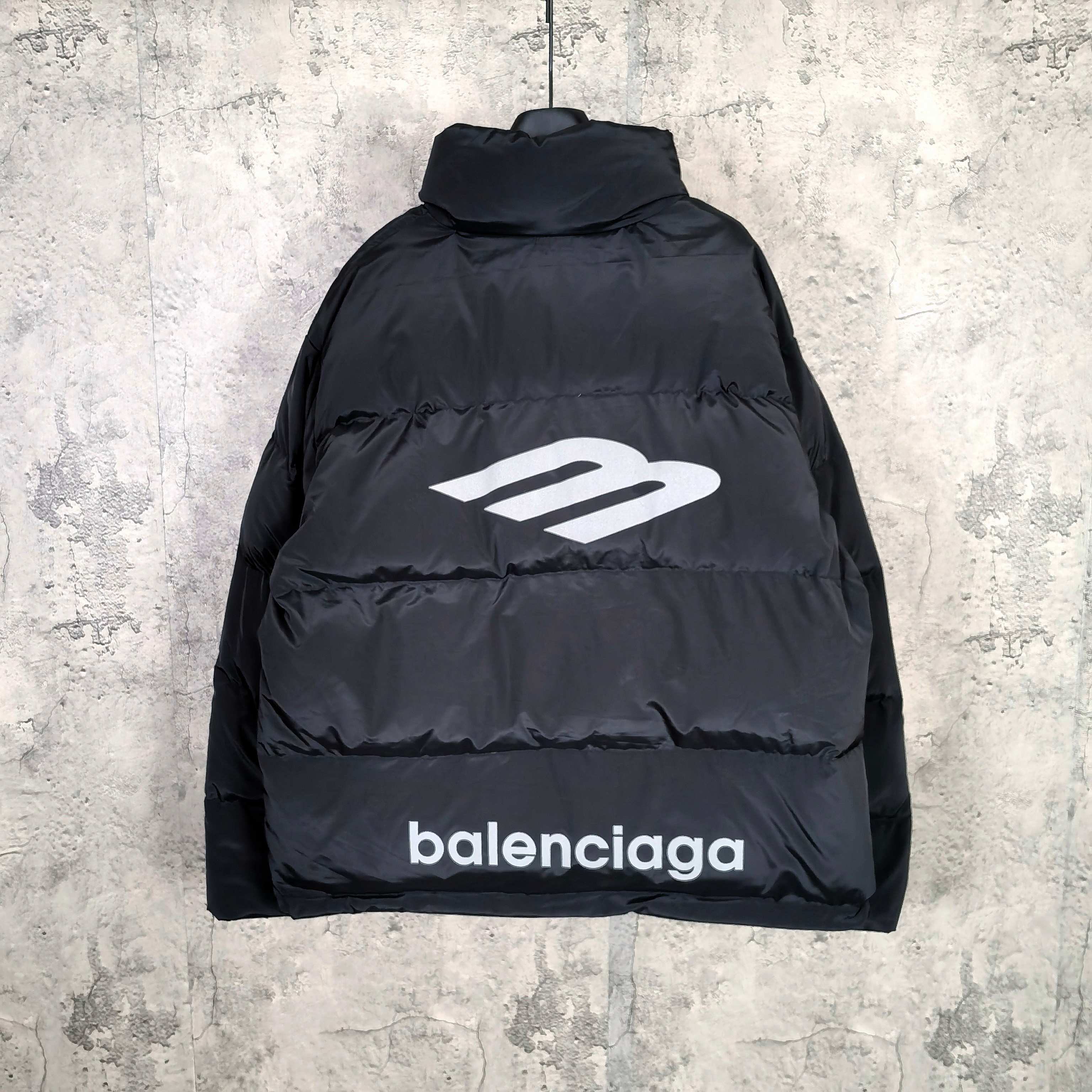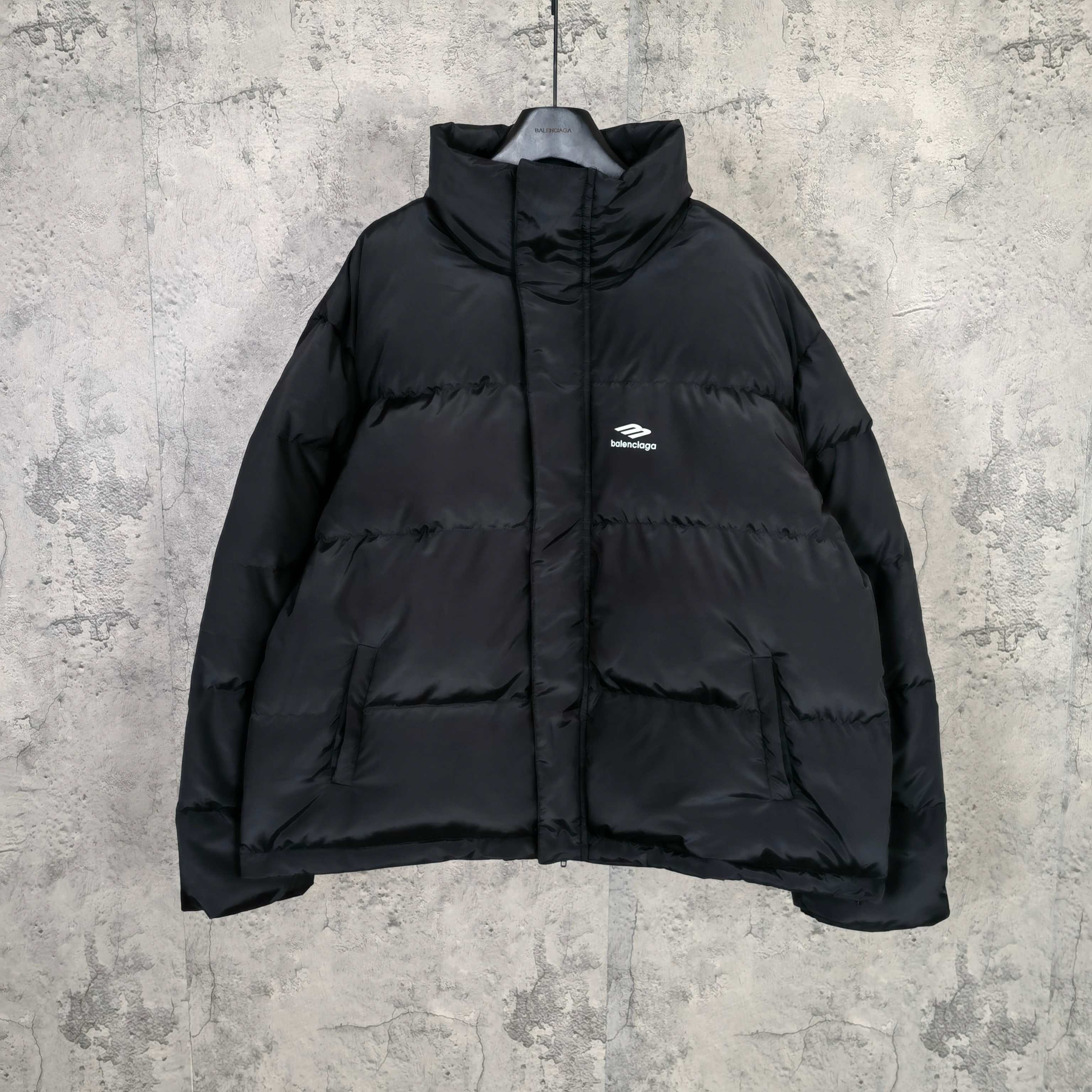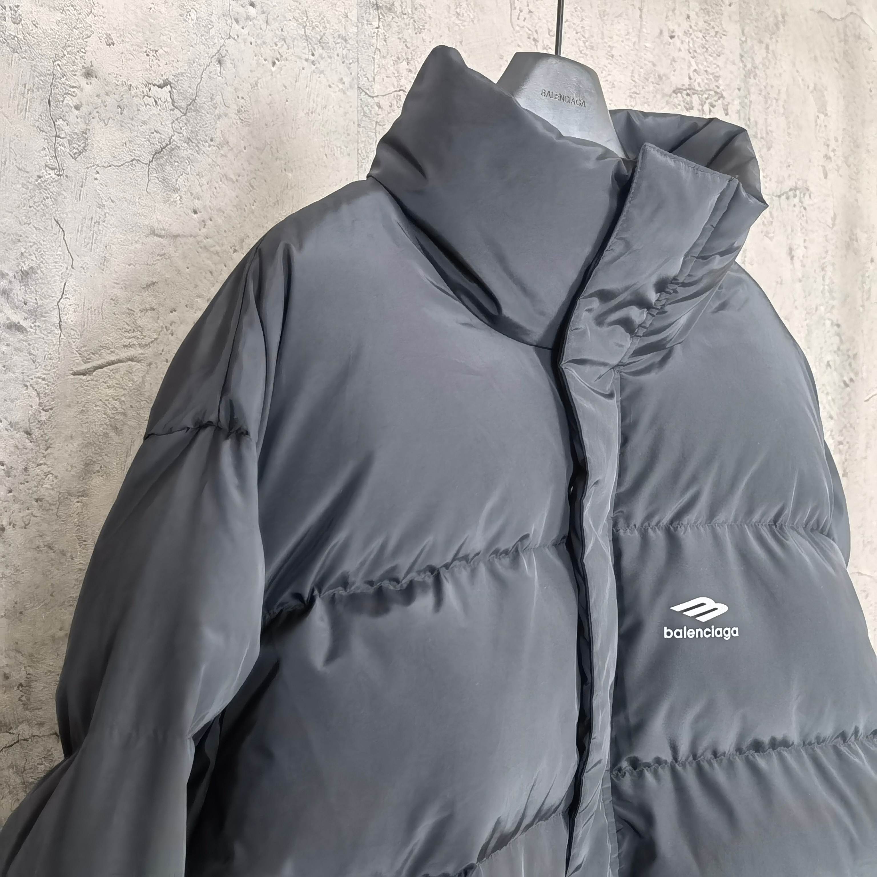 발랜시아가 프린트 로고 레터링 지퍼 다운 재킷