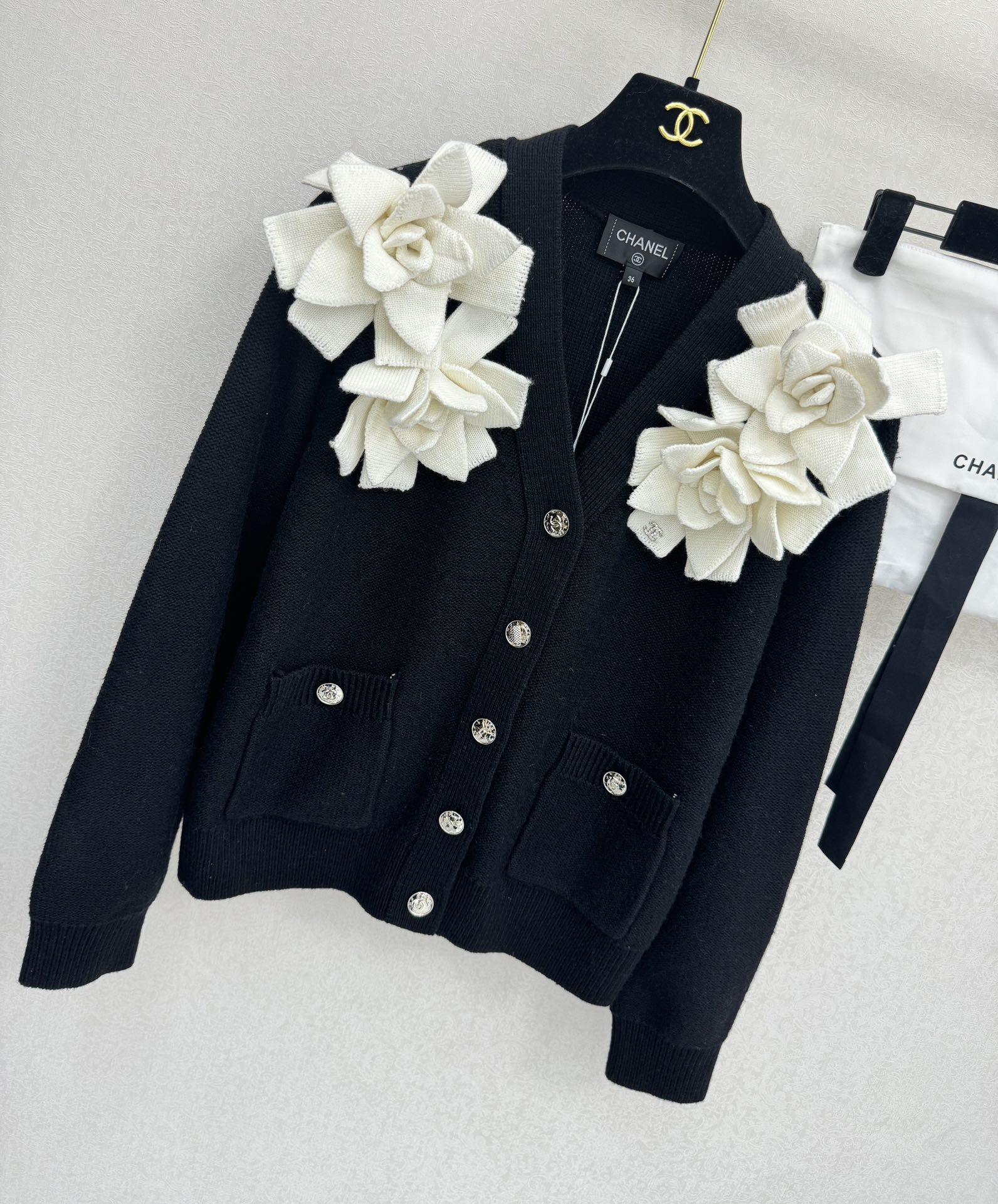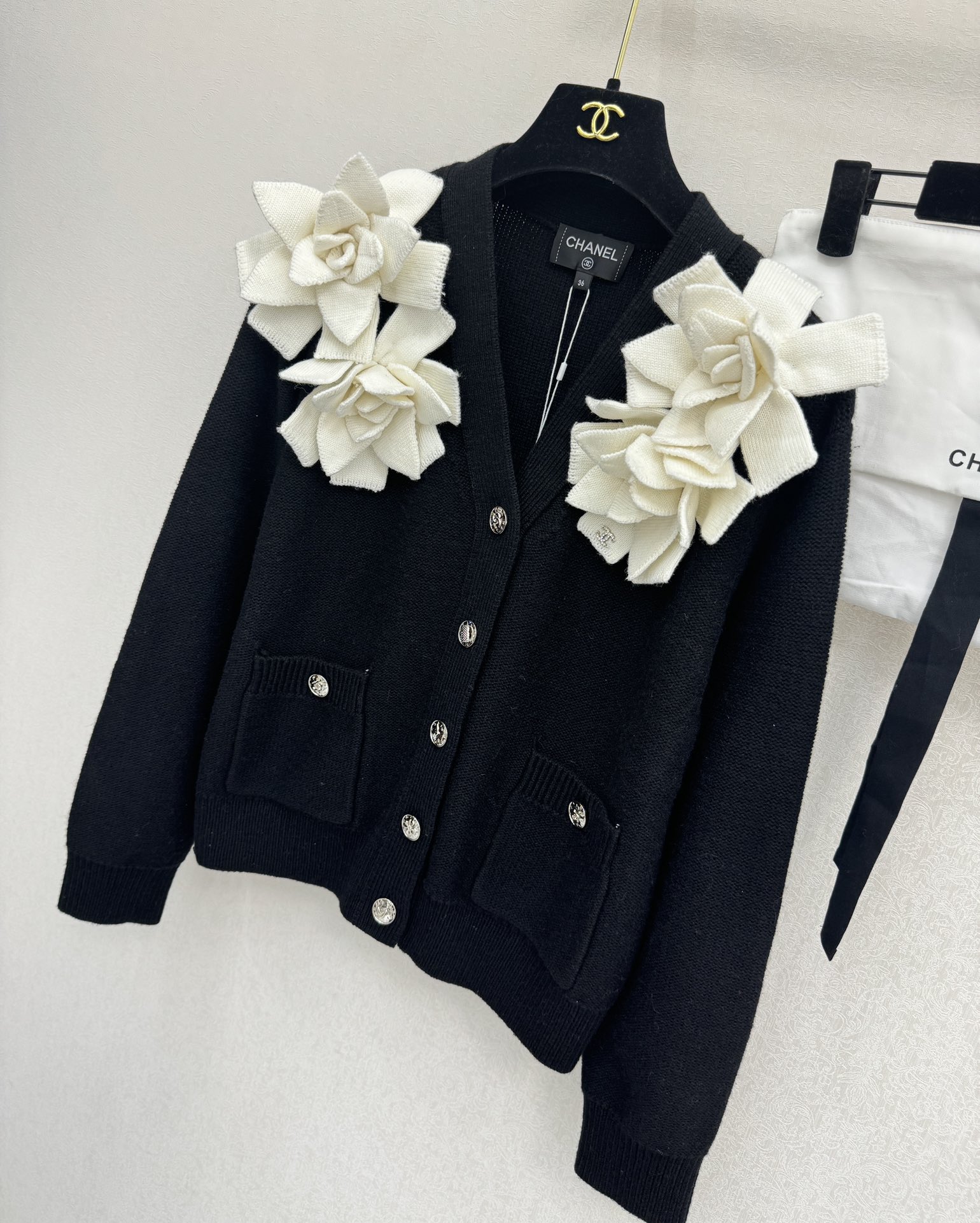 샤넬 V넥 플라워 가디건