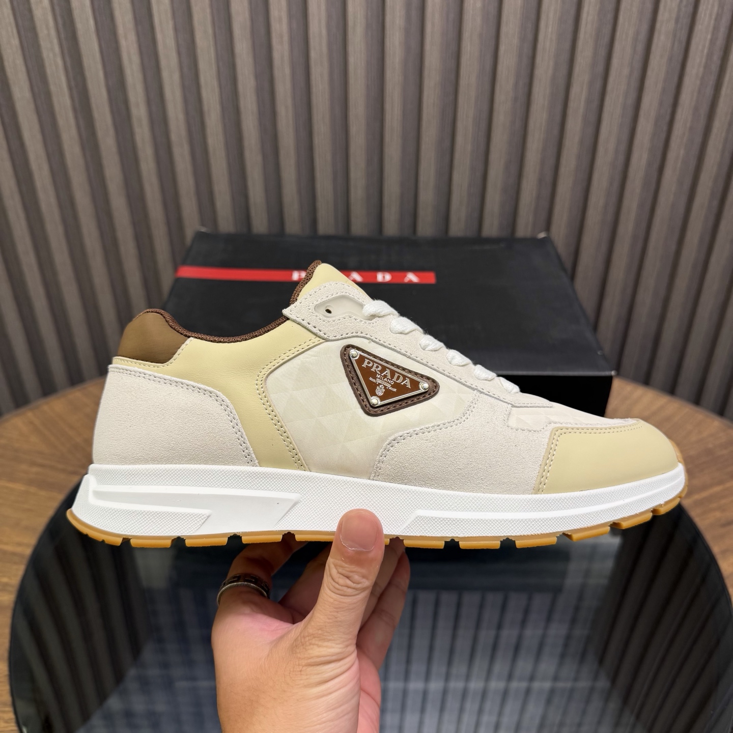 프라다 에나멜 로고슈즈