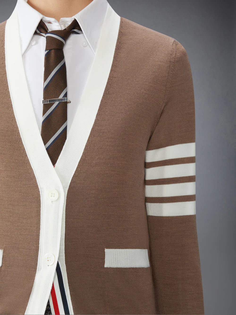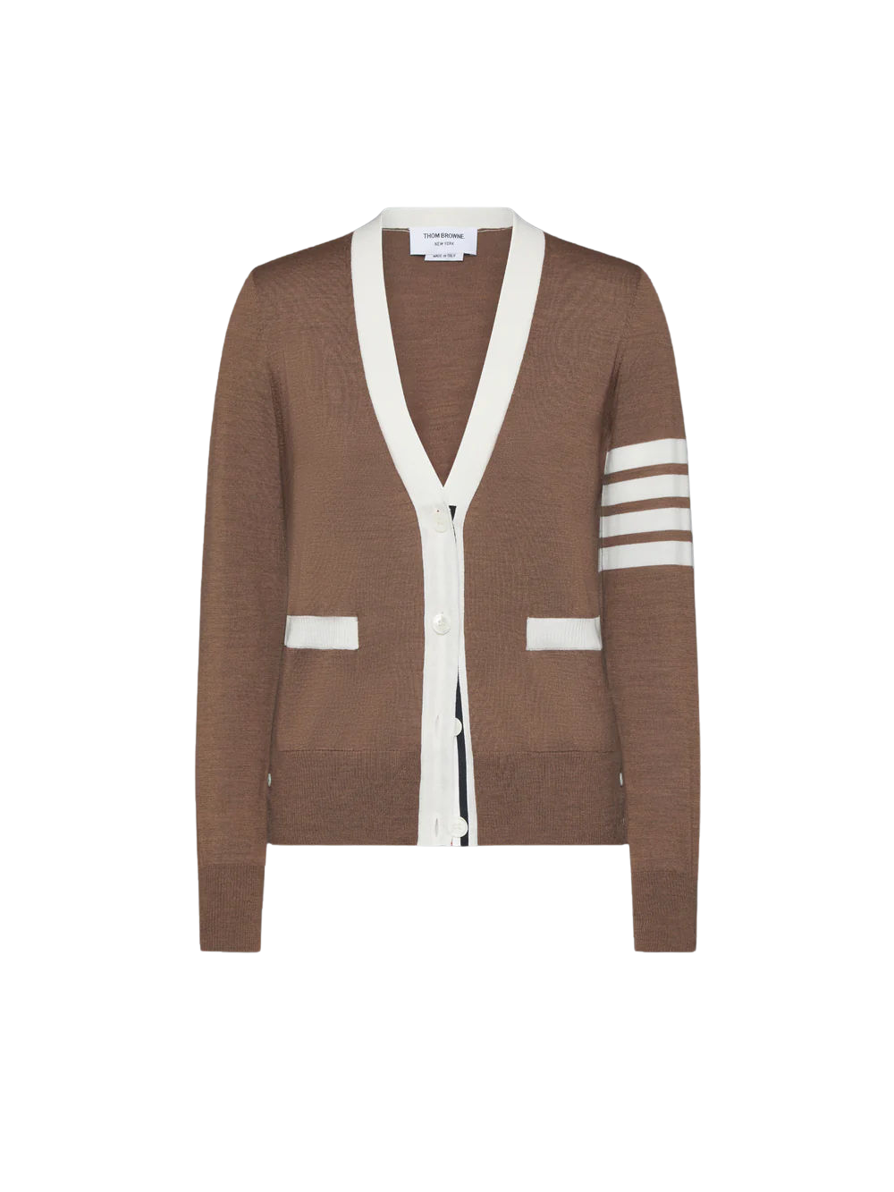 파인 메리노 울 4-바 브이넥 카디건
