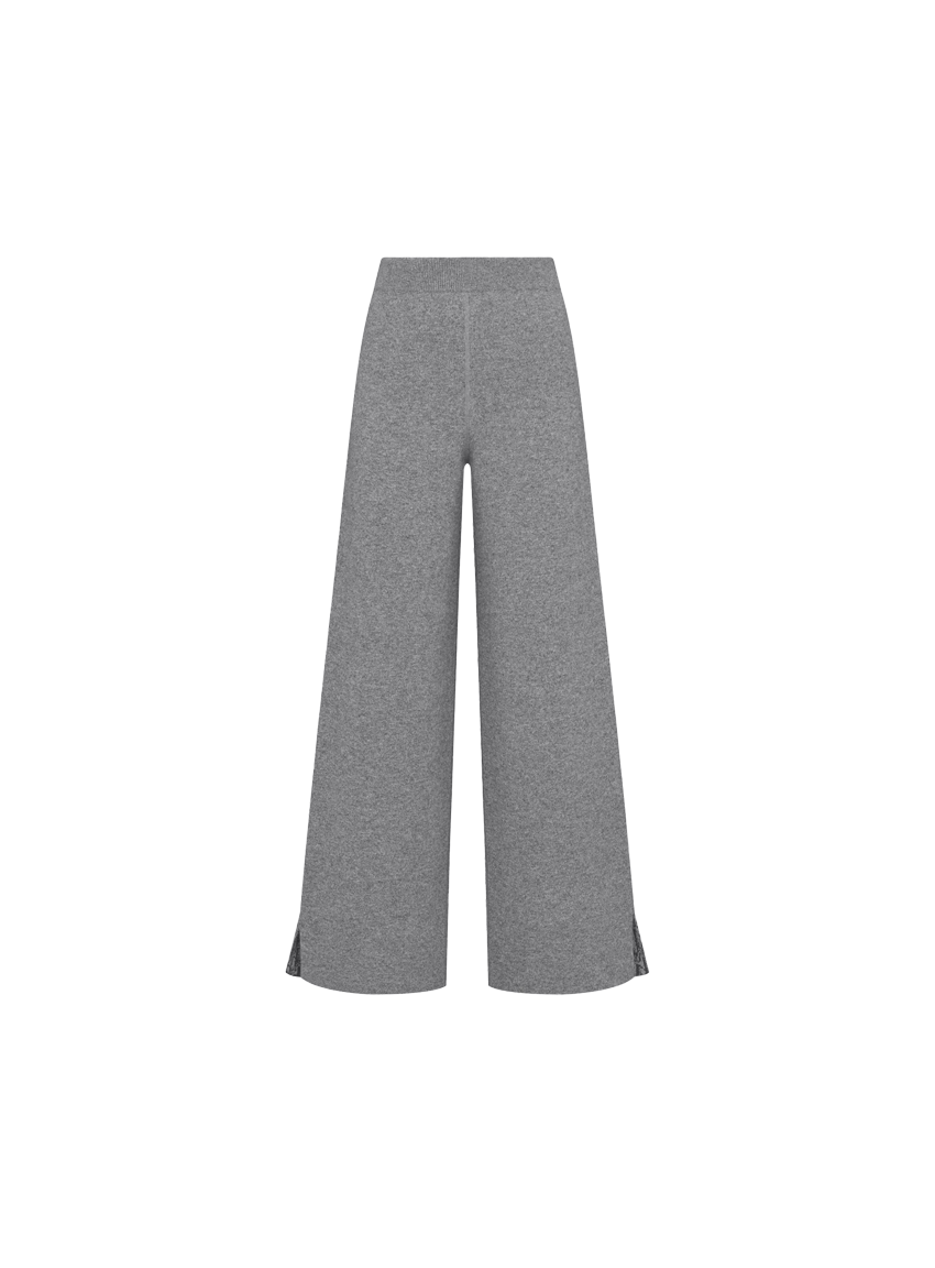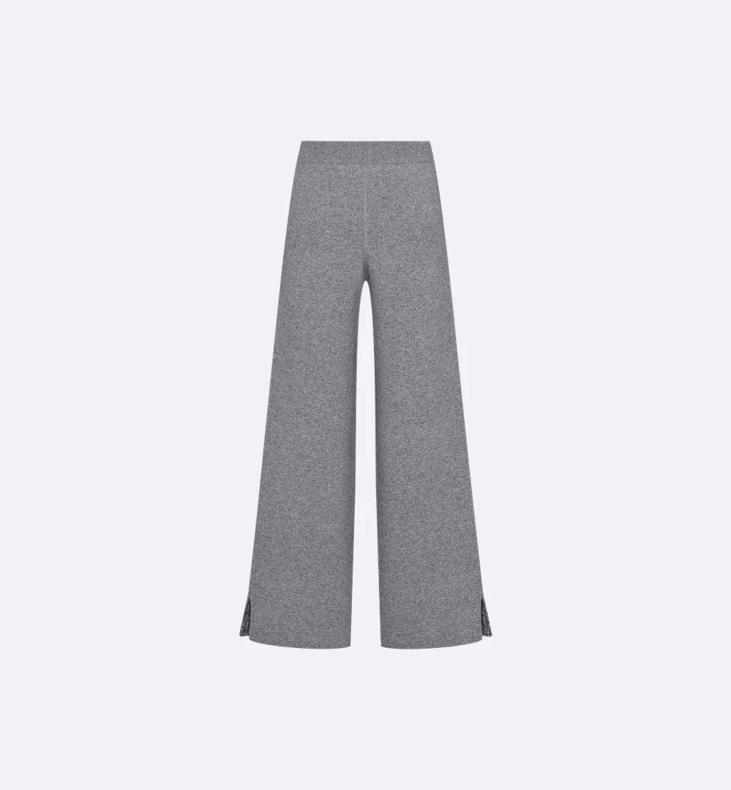 Dior만의 캐주얼한 우아함을 재해석한 팬츠입니다. 그레이 컬러의 캐시미어 블렌드 니트 소재로 제작된 플레어 컷 디자인으로, 밑단의 슬릿 디테일을 통해 내부의 Dior Oblique 모티브가 돋보입니다. 가디건과 세트로 매치해 시그니처 Dior Oblique 룩을 연출하기 좋습니다.